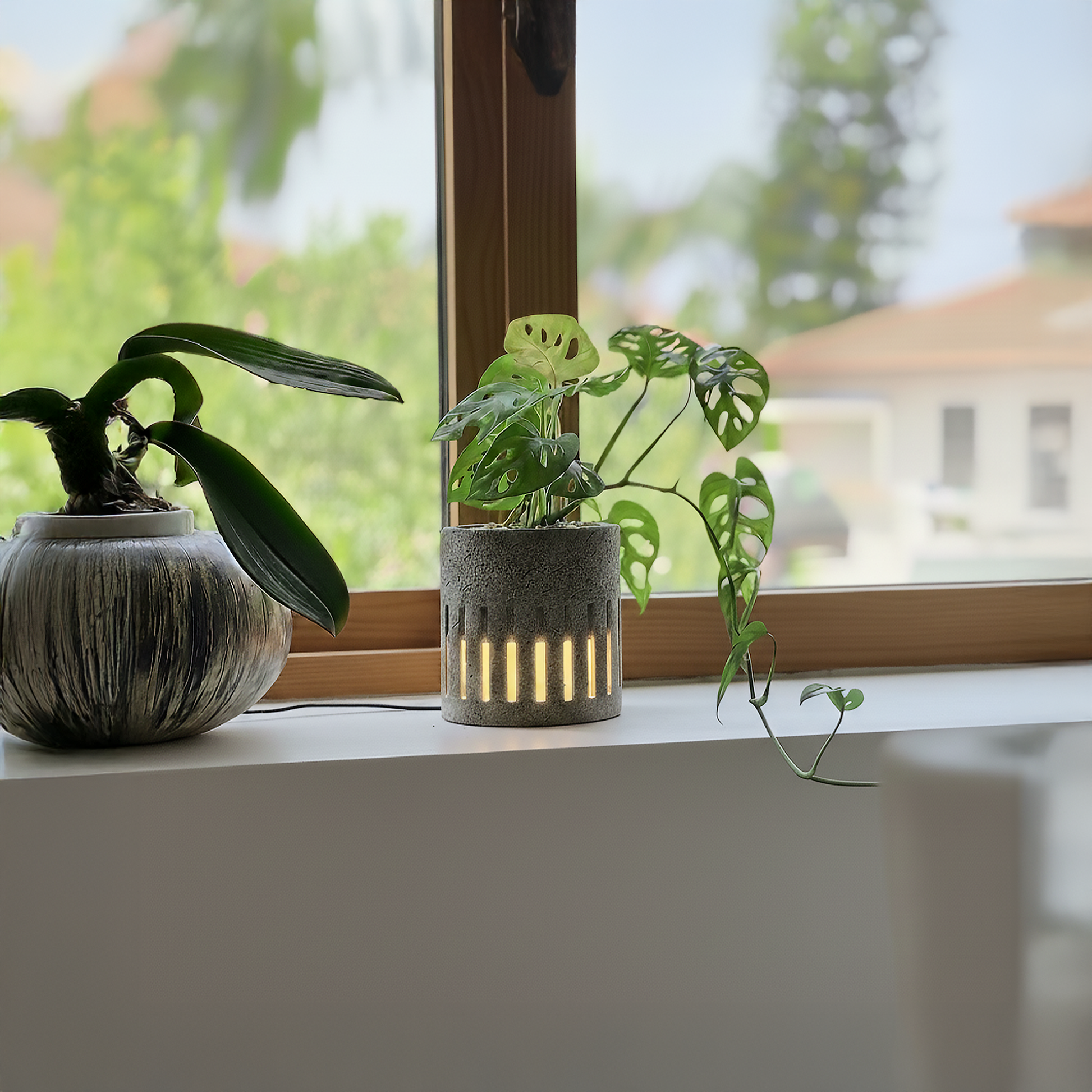 הוא גוף תאורה מעוצב לשולחן עבודה, מדף או שידת לילה - עם עציץ מובנה לצמח קטן שמוסיף רוגע, ירוק וחיים לכל פינה.